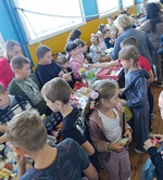 Яких тільки смаколиків не було на столах: ароматні пиріжки 🥟, хрустке печиво 🍪, вафлі, трубочки, торти 🍰, цукерки 🍬, навіть бургери 🍔 та сосиски в тісті 🌭 – всього й не перерахувати! А ще – вироби, зроблені своїми руками, 🧵🎨 та цікава лотерея, яка додала святу яскравості.